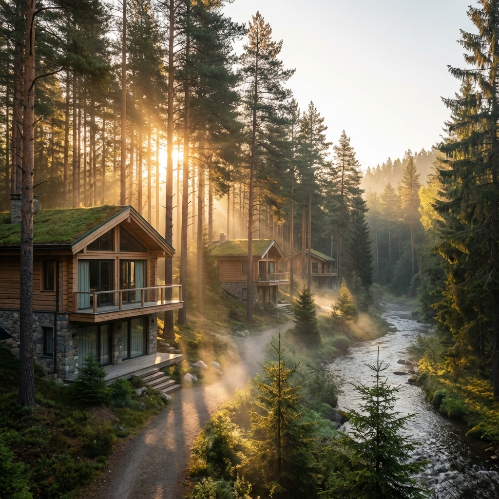 Эко-лендинг для коттеджного посёлка с параллакс-эффектом и планировками домов