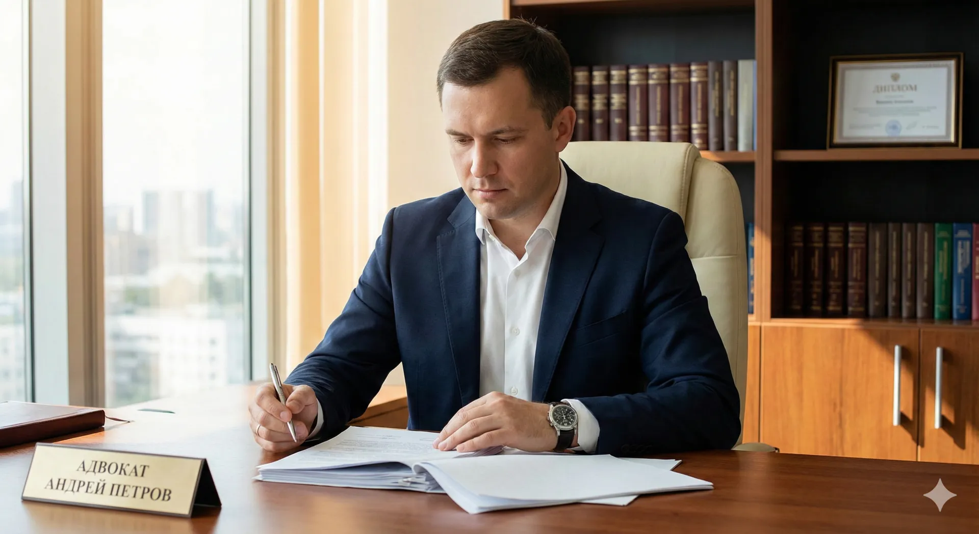 Премиальный лендинг для юридической фирмы с параллаксом и знаковыми делами
